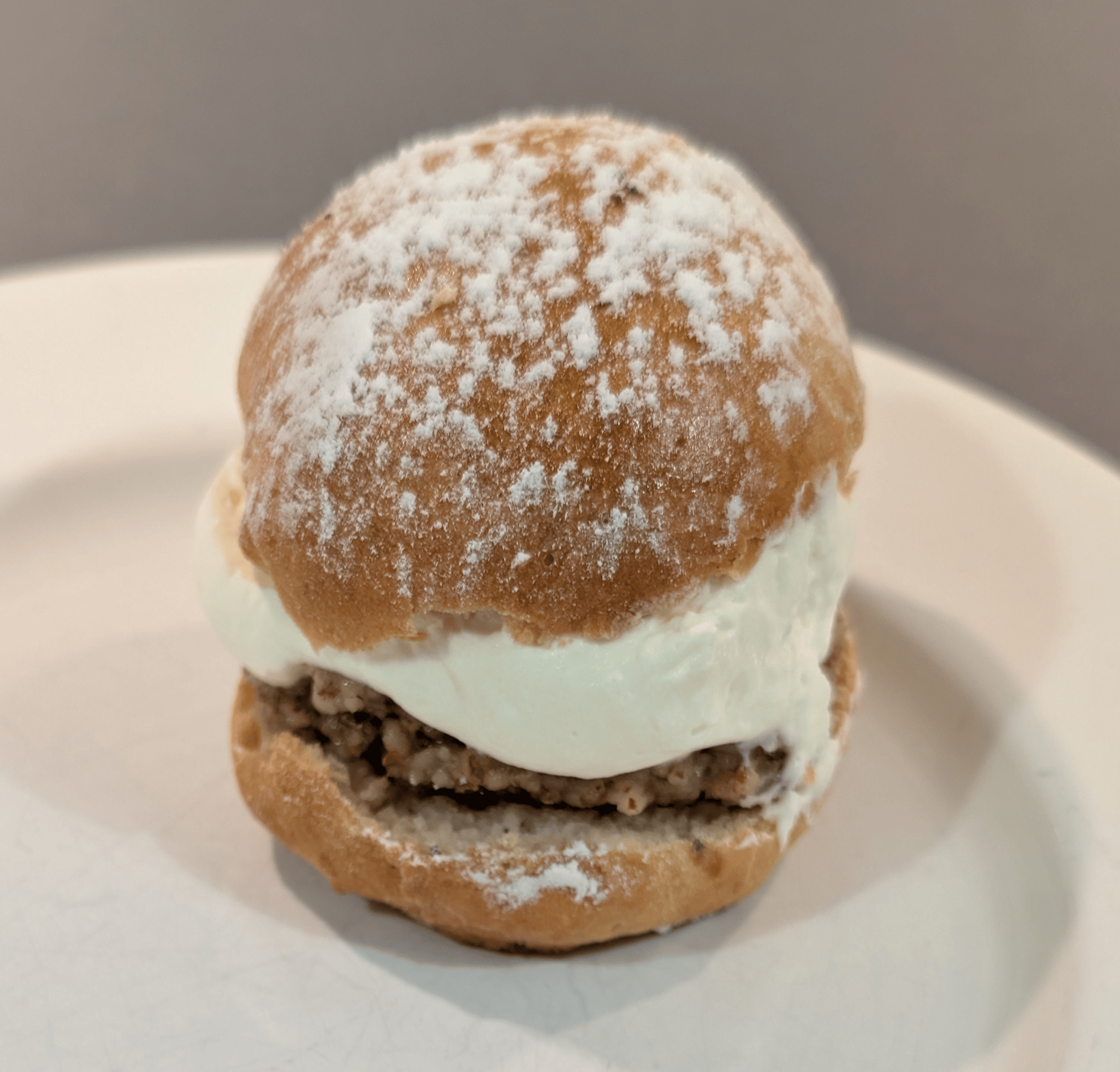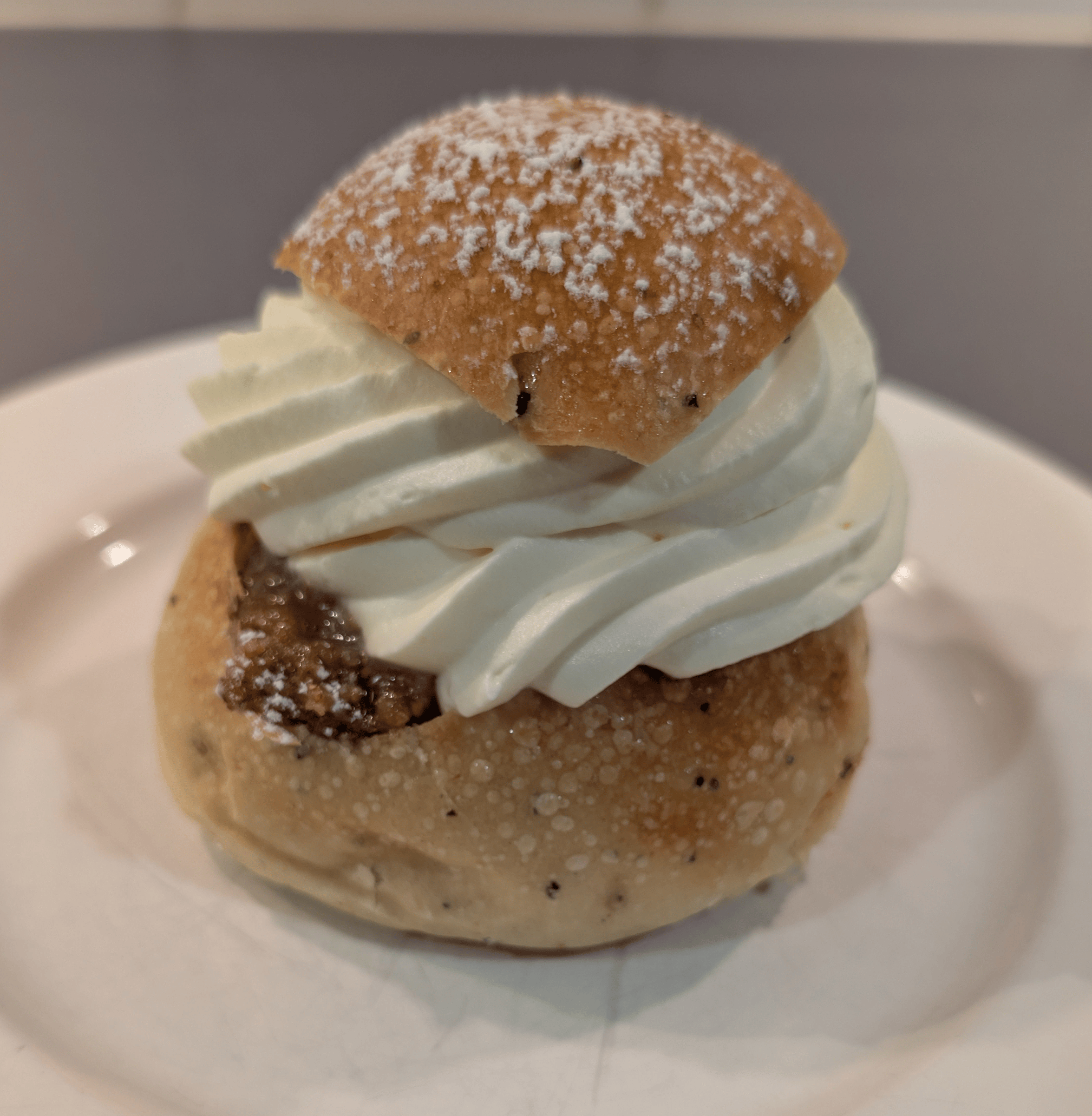 Denna tänjer på gränsen för vad som kan anses vara en semla, vilket hindrar mig från ett ge den högre poäng, men den var hemskt god!